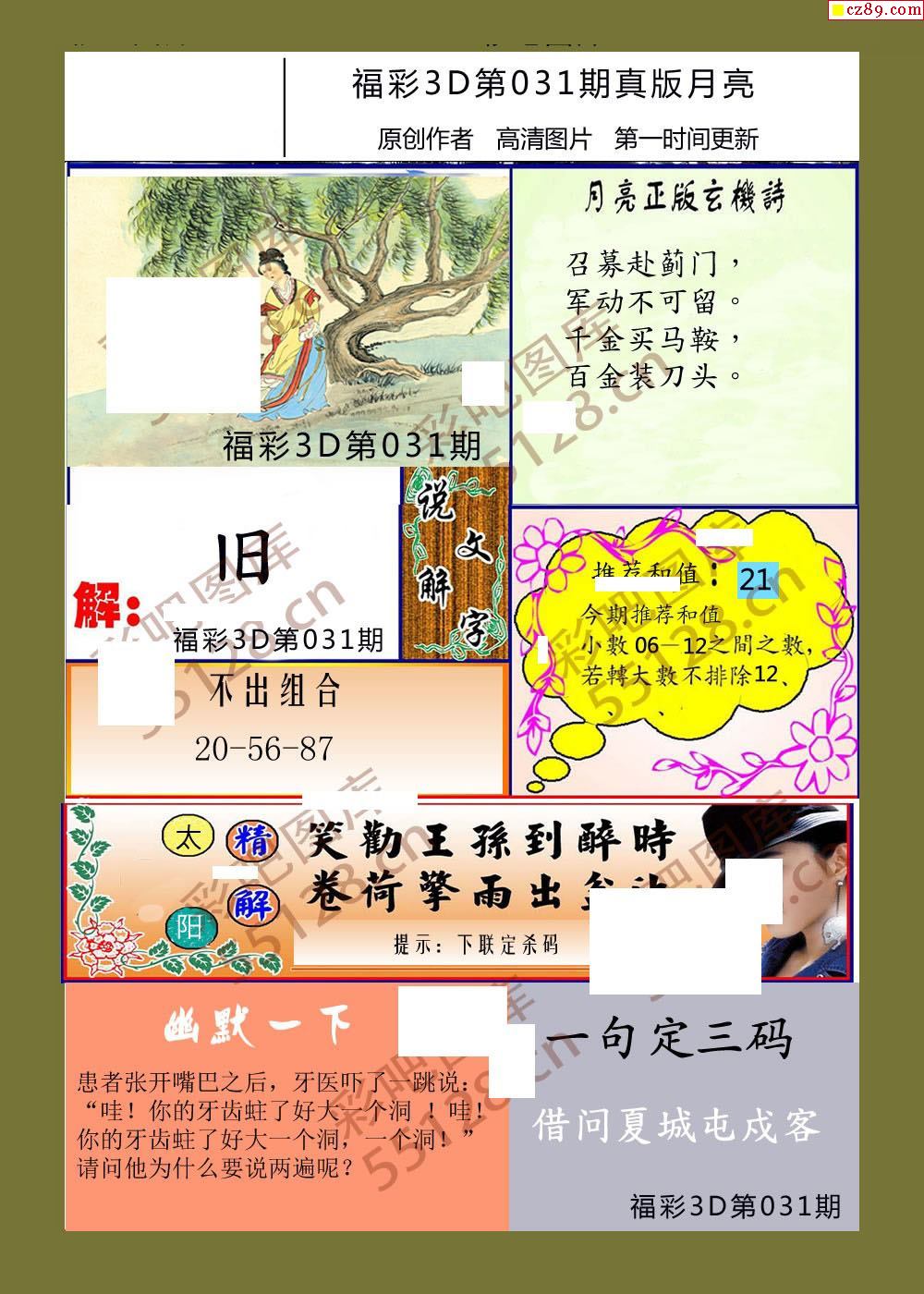 月亮26年031期福彩3d玄机图谜